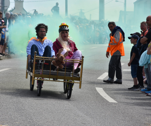 Am Pfingstsamstag waren die Partnerschaftsfreunde angereist und meldeten sich im Festbüro an, wo sie sich auch gleich für ihre bevorzugten Programmpunkte anmelden konnten. Alle wohnten bei schönstem Wetter dem Seifenkisten-Rennen mit anschließendem Konzert im Ortsteil St. Michel bei. Dort trafen sich alle Musikliebhaber beim Konzert des Musik-Projekts in der Bucht Korrejou, um die deutschen und bretonischen Musikgruppen zu hören und bei guter Stimmung den ersten Tag abzuschließen.